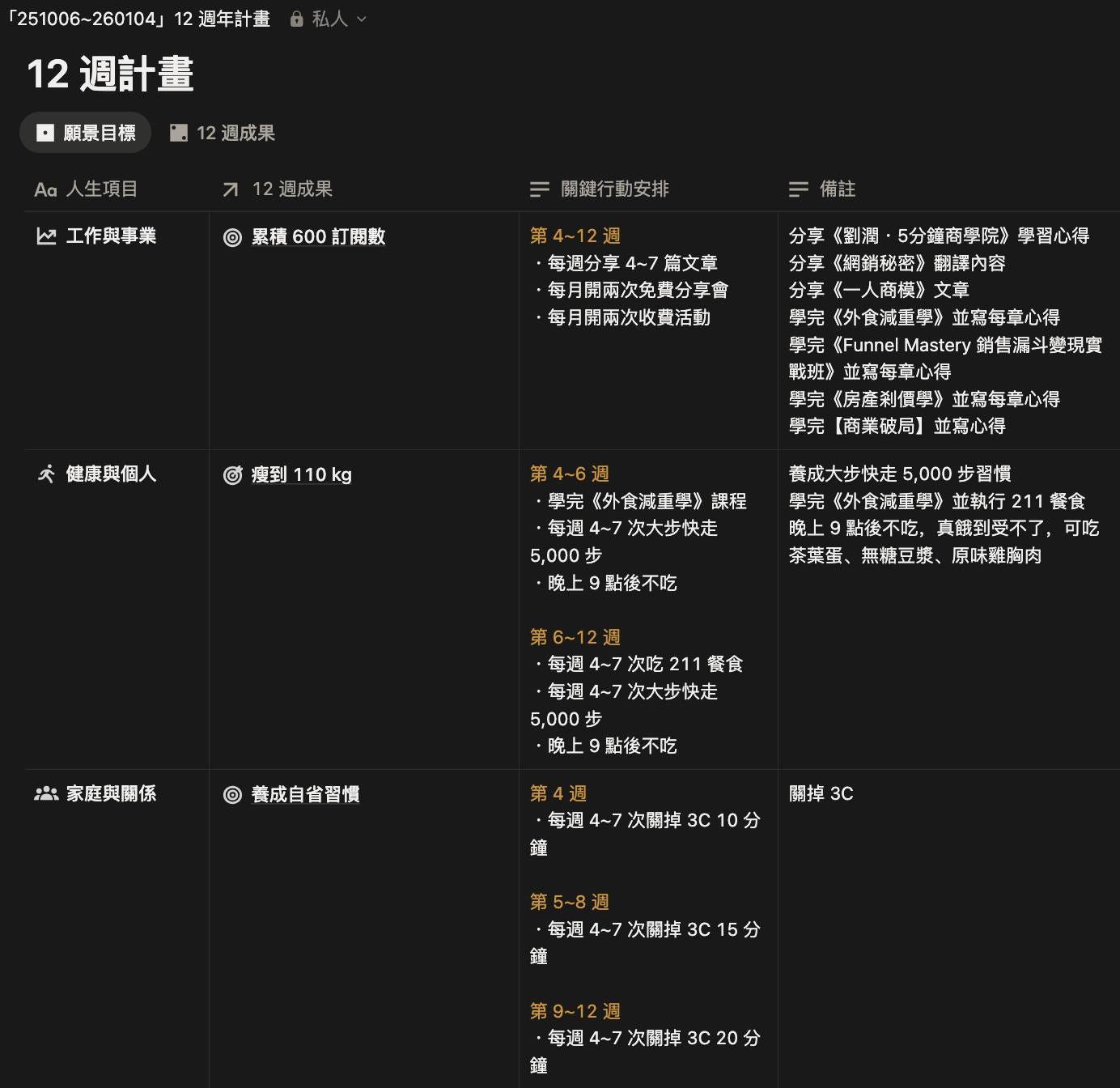 今天想與你分享,我《12 週年計畫》第一期第三週心得(251020~251026)。
