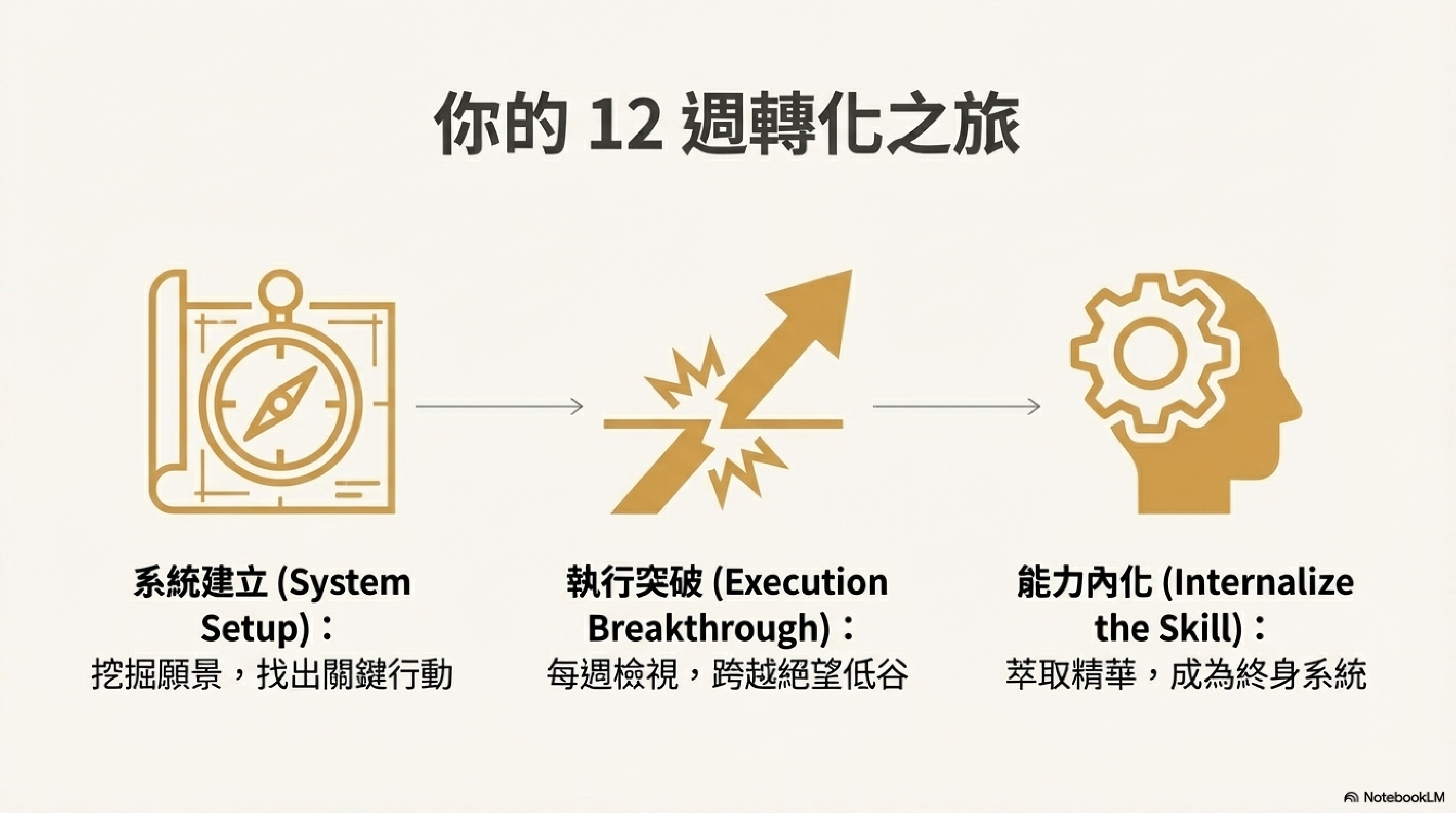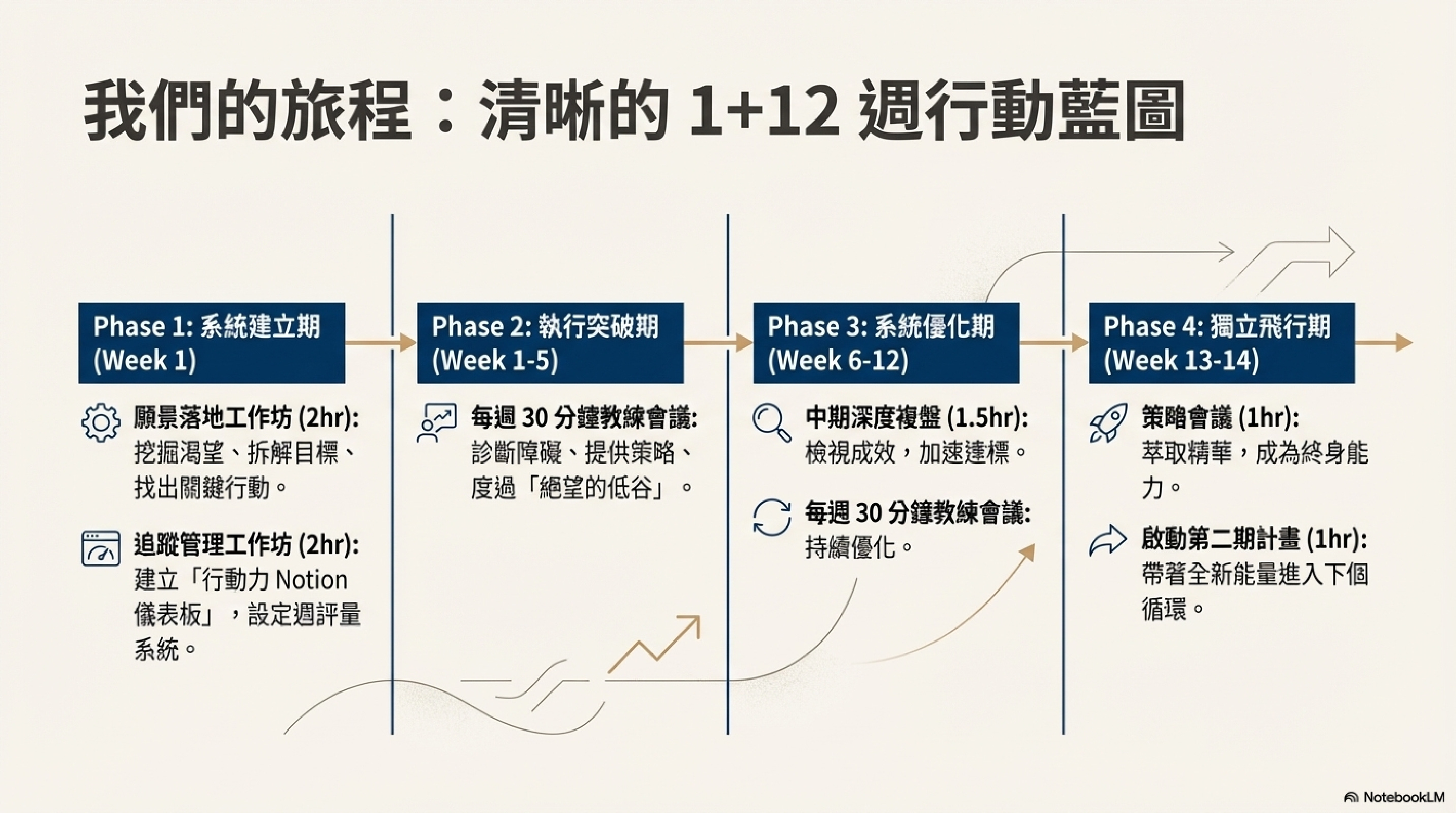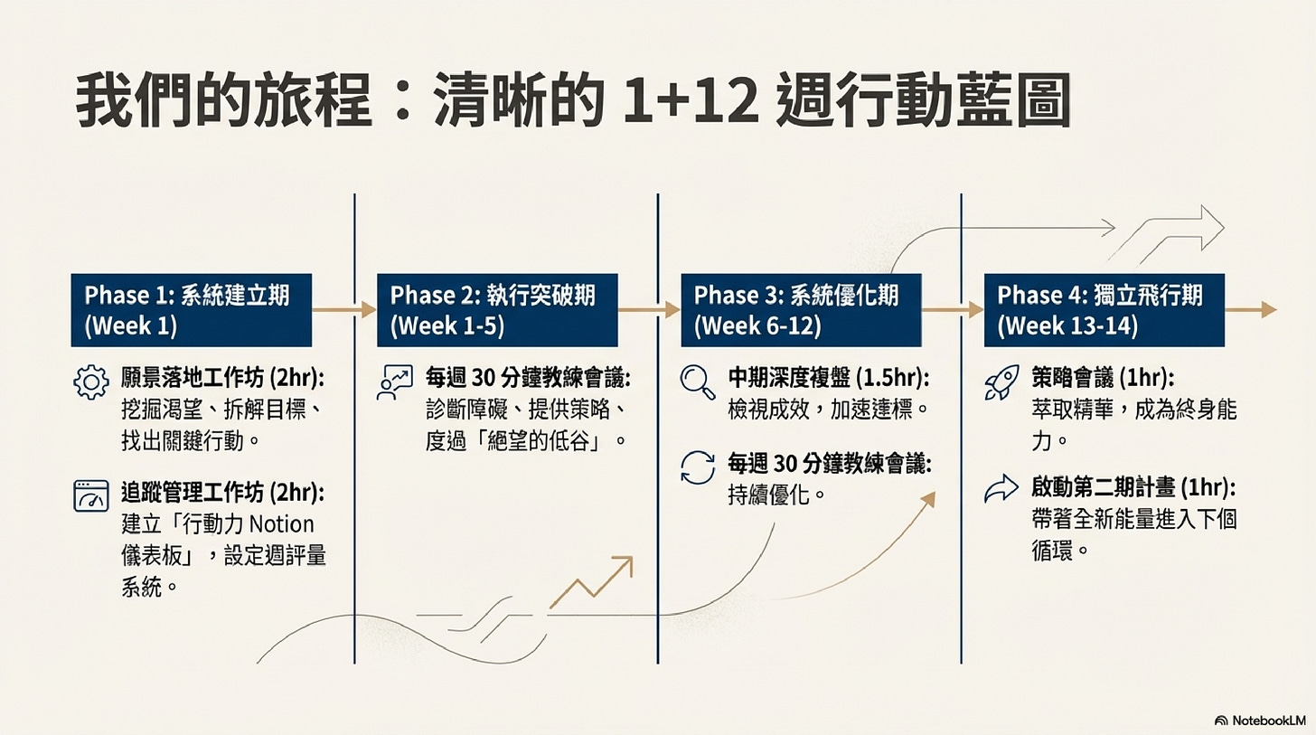 這是為期 1+12 週的深度陪伴,一對一打造你的高效執行系統。
