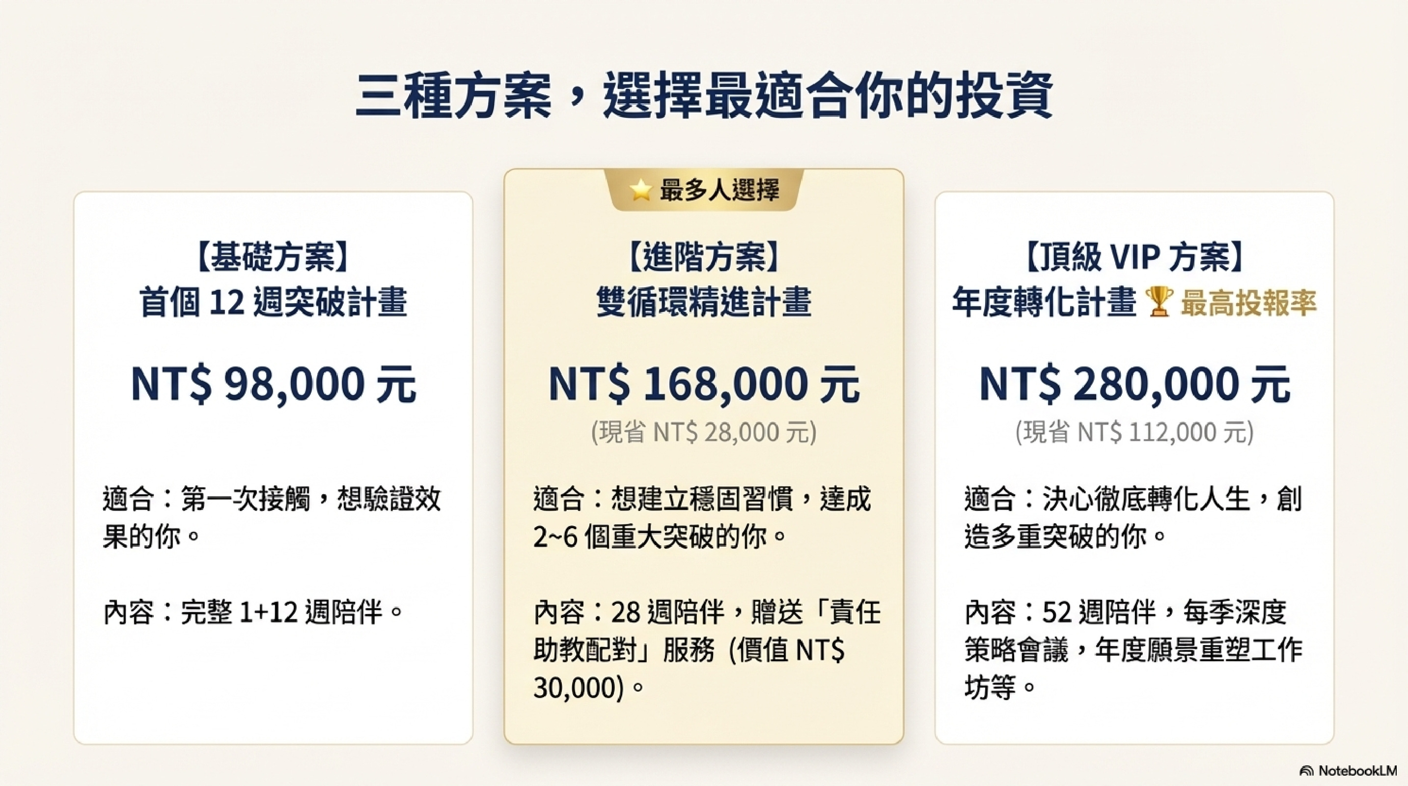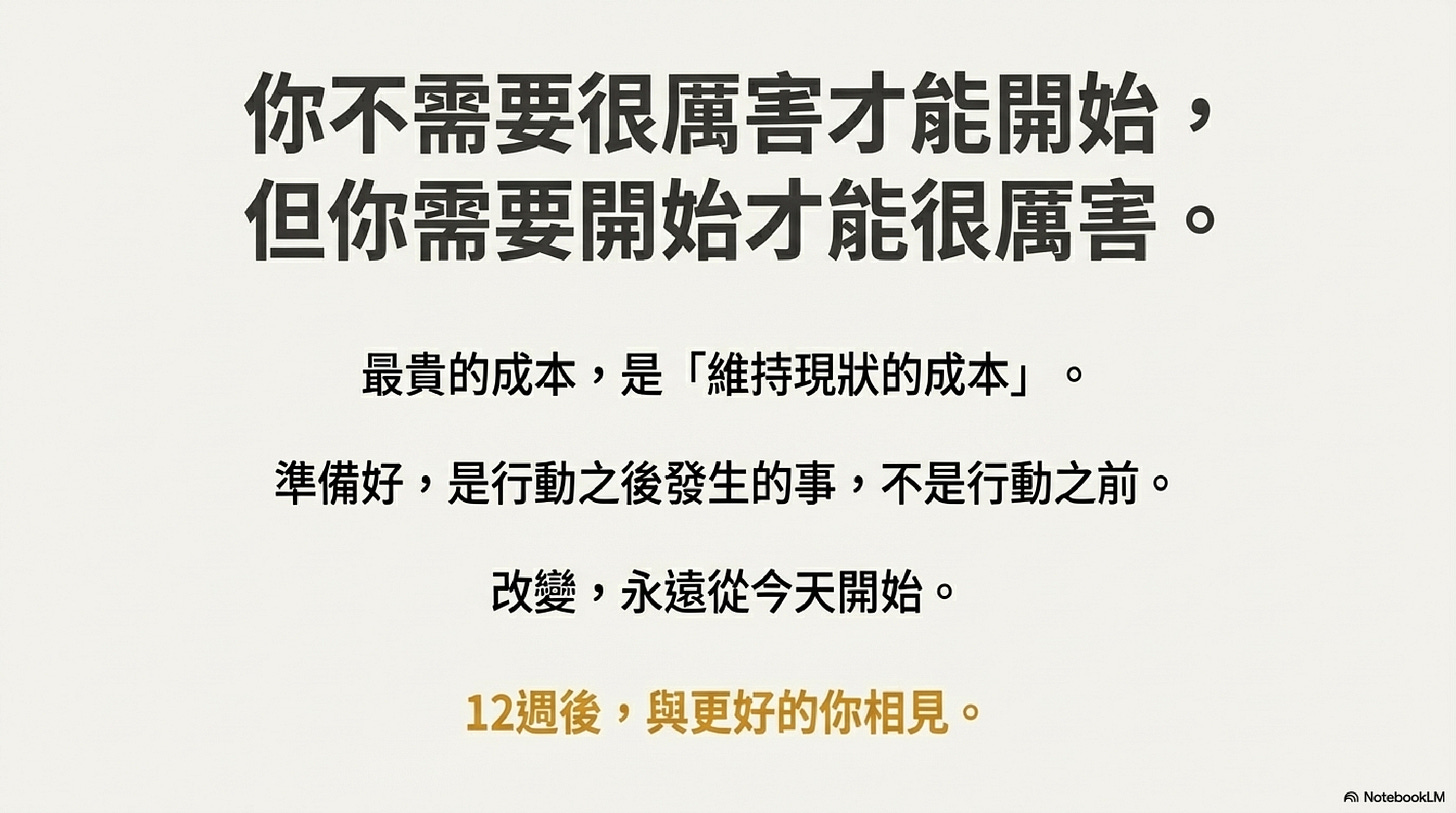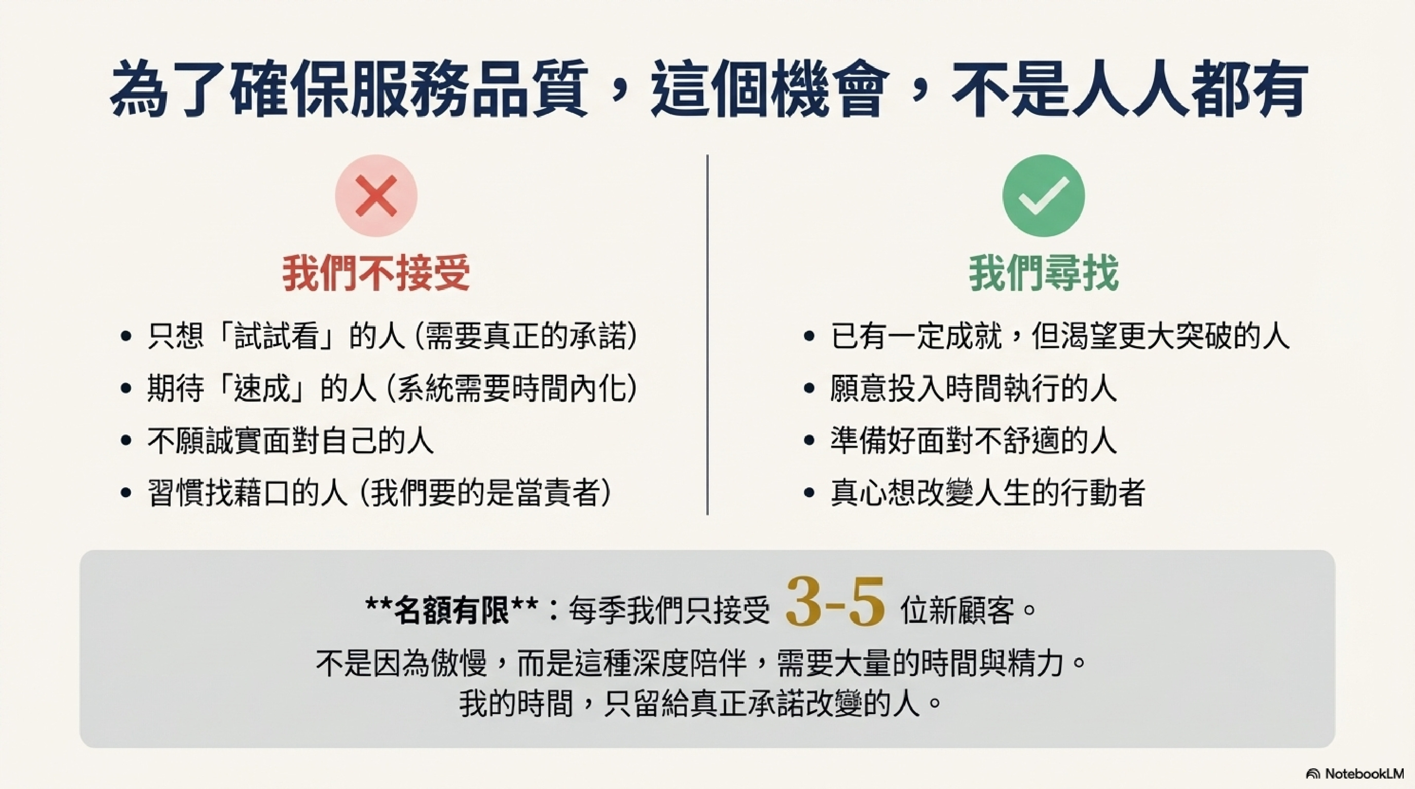 這「《12 週做完一年工作》一對一顧問陪跑」不是給每個人的,只給準備好要改變自己的人。
