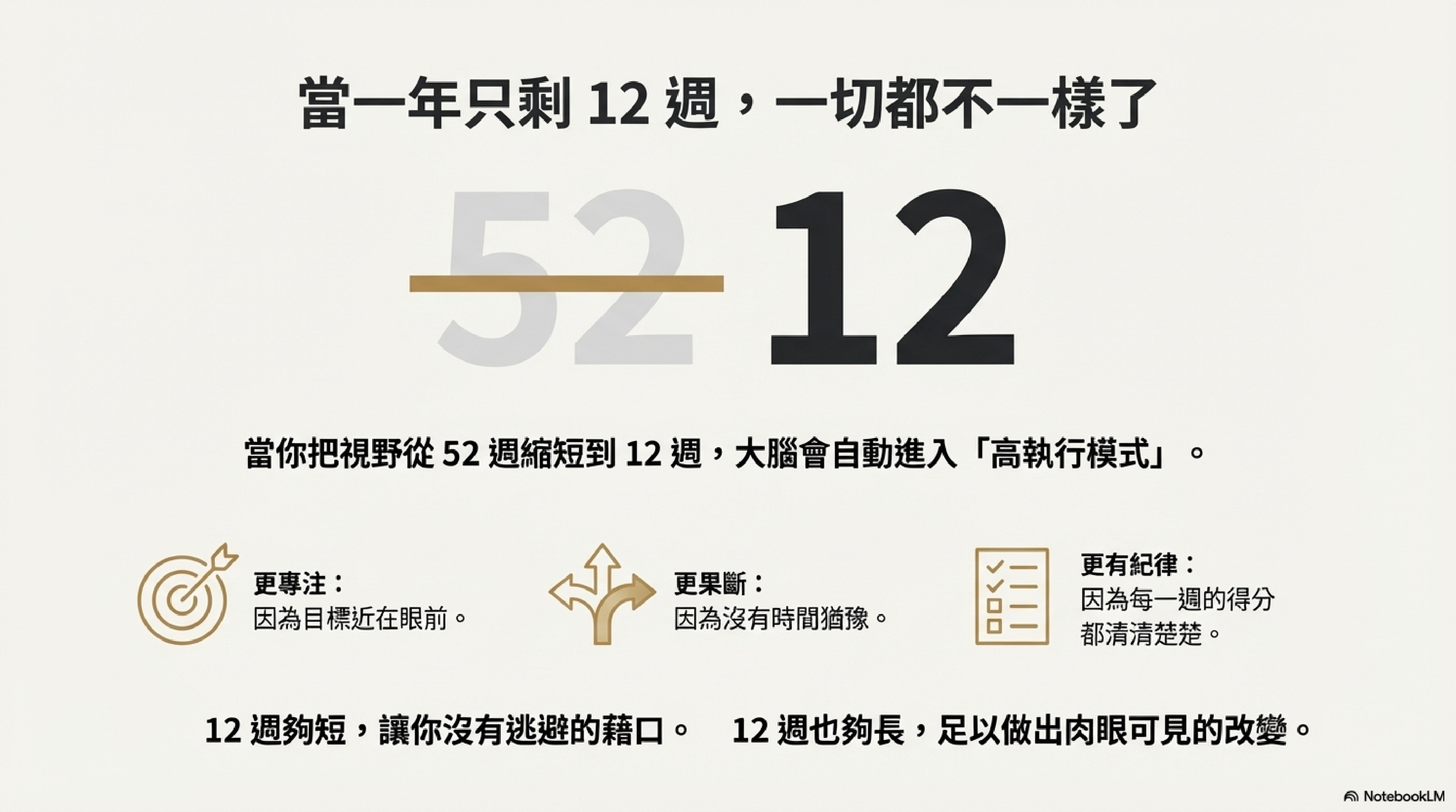 當你把視野縮短到12週,大腦會自動進入「高執行模式」。
