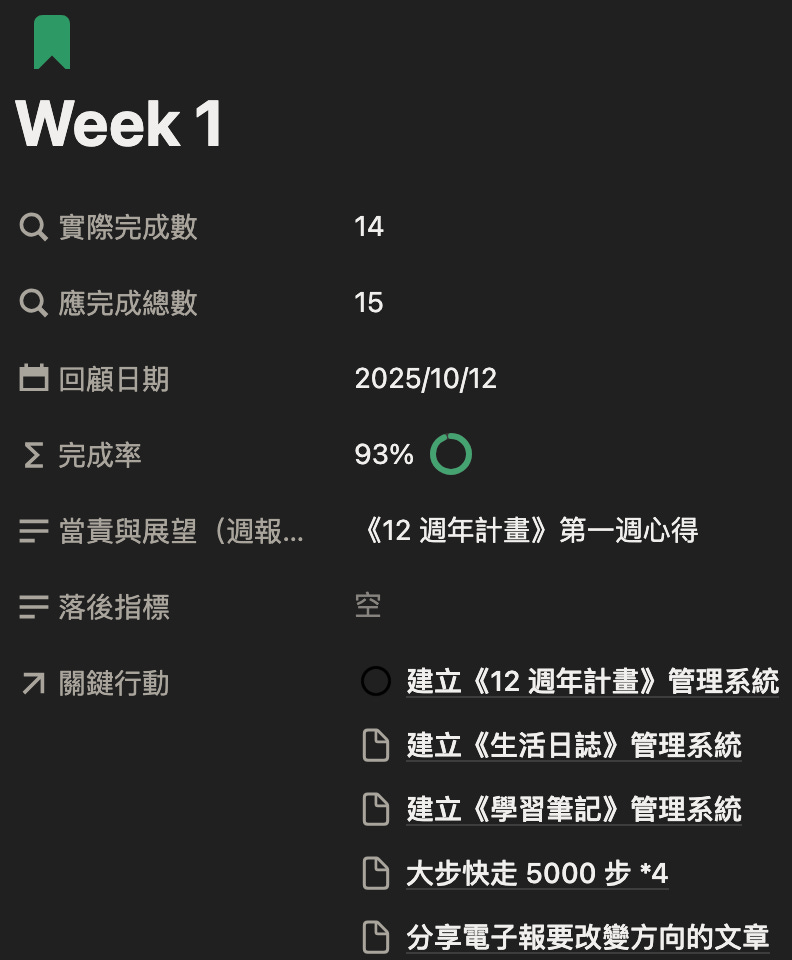不管怎麼說,《12 週年計畫》的第一週總算順利完成了,下週就開始執行第二週的進度囉。😁