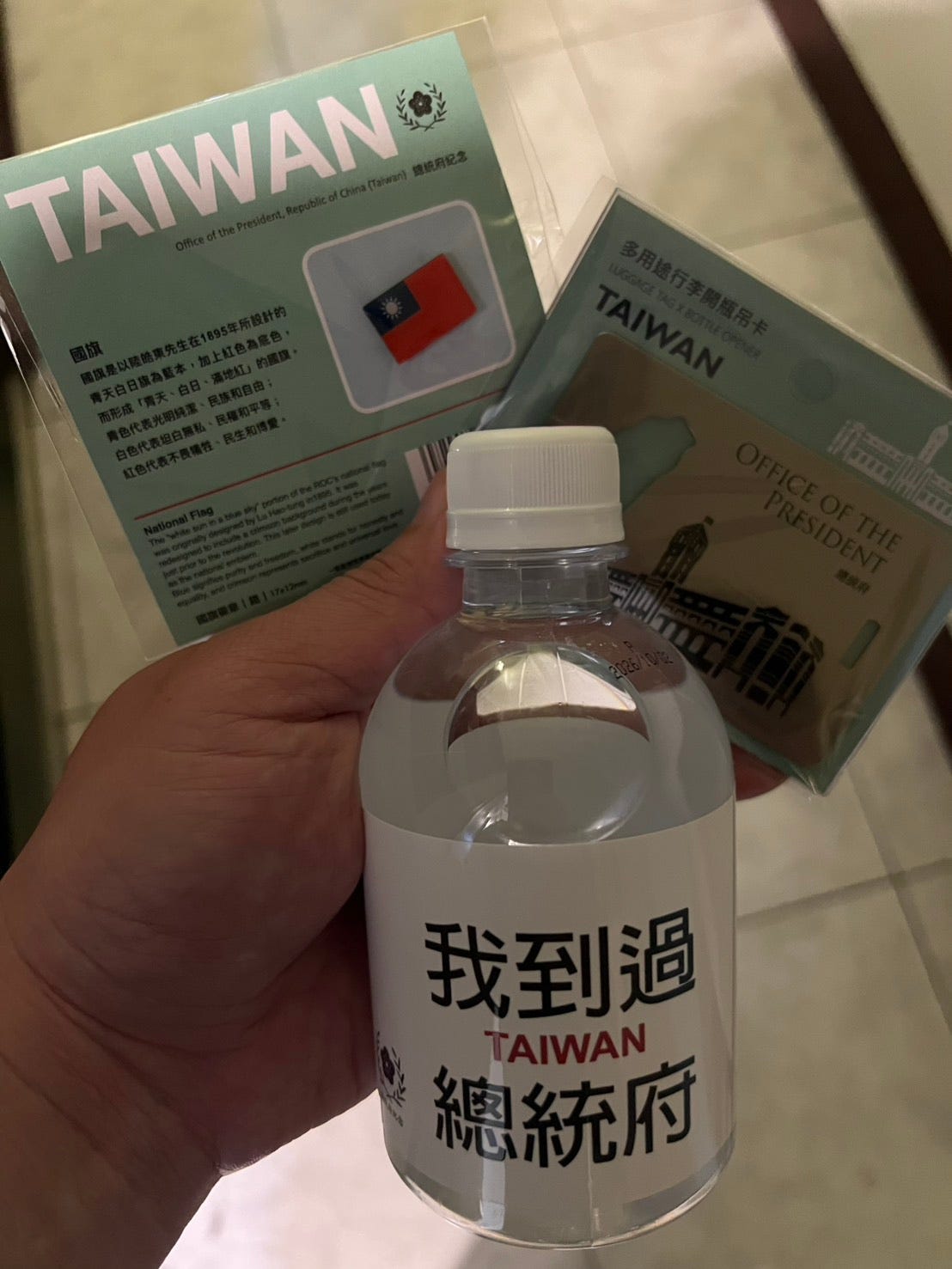 這次,我最多就買個「我到過總統府」的瓶裝水,以及可以別在西裝上的國旗徽章。
