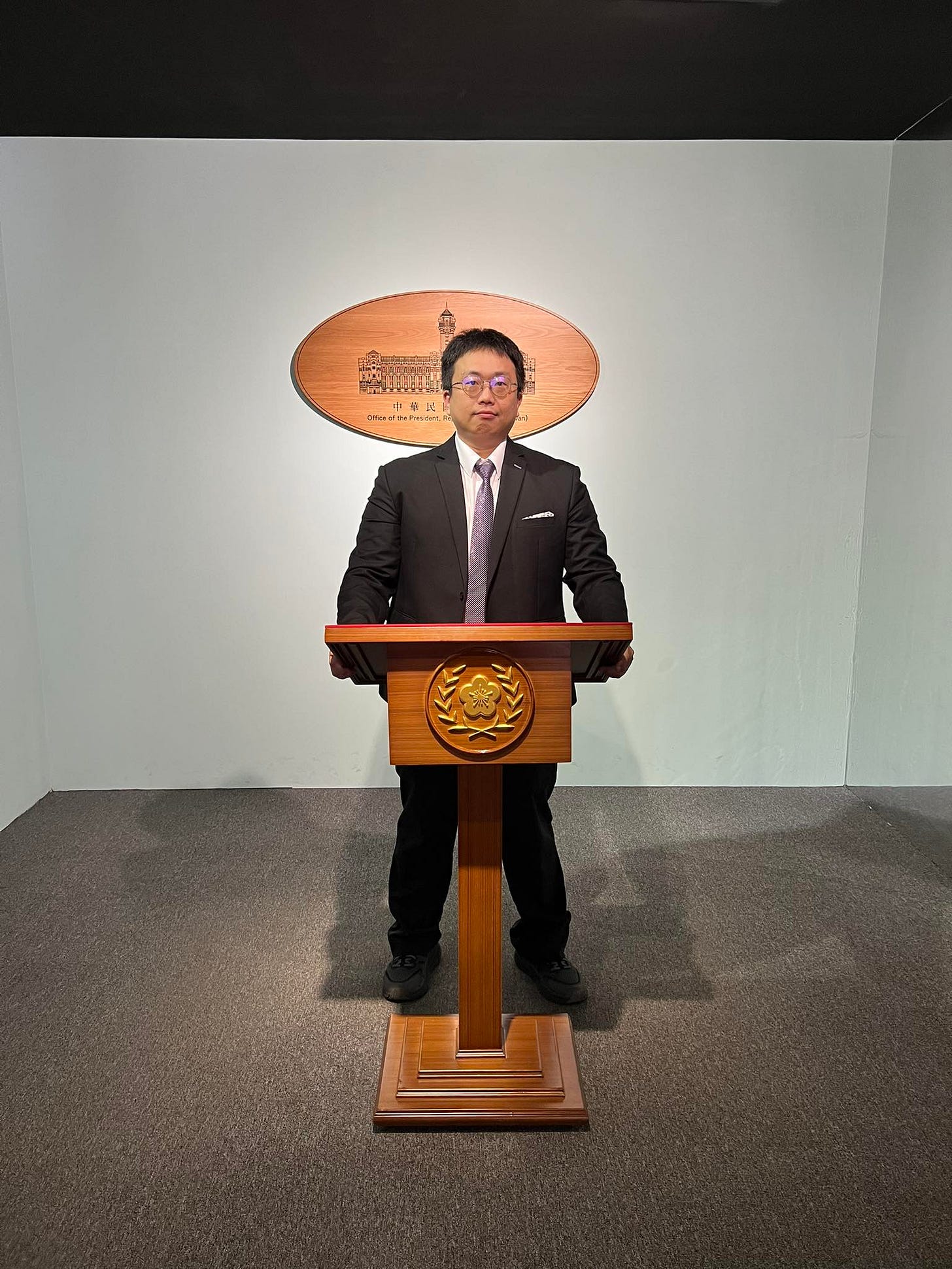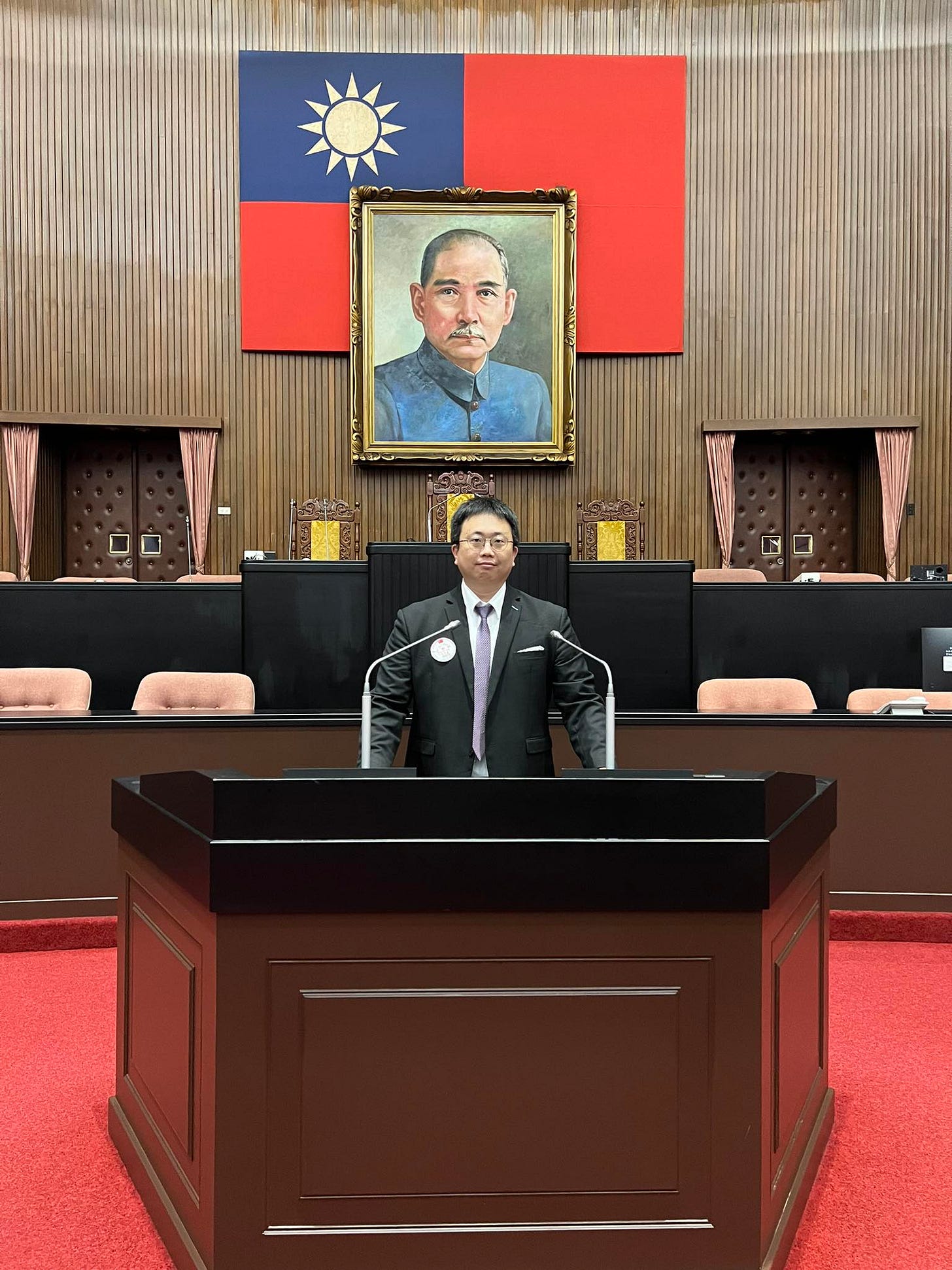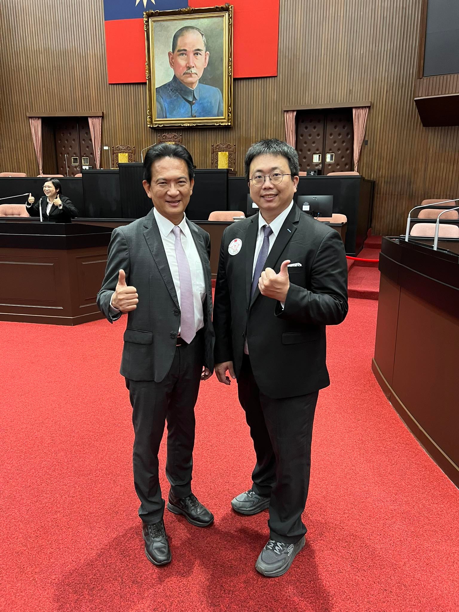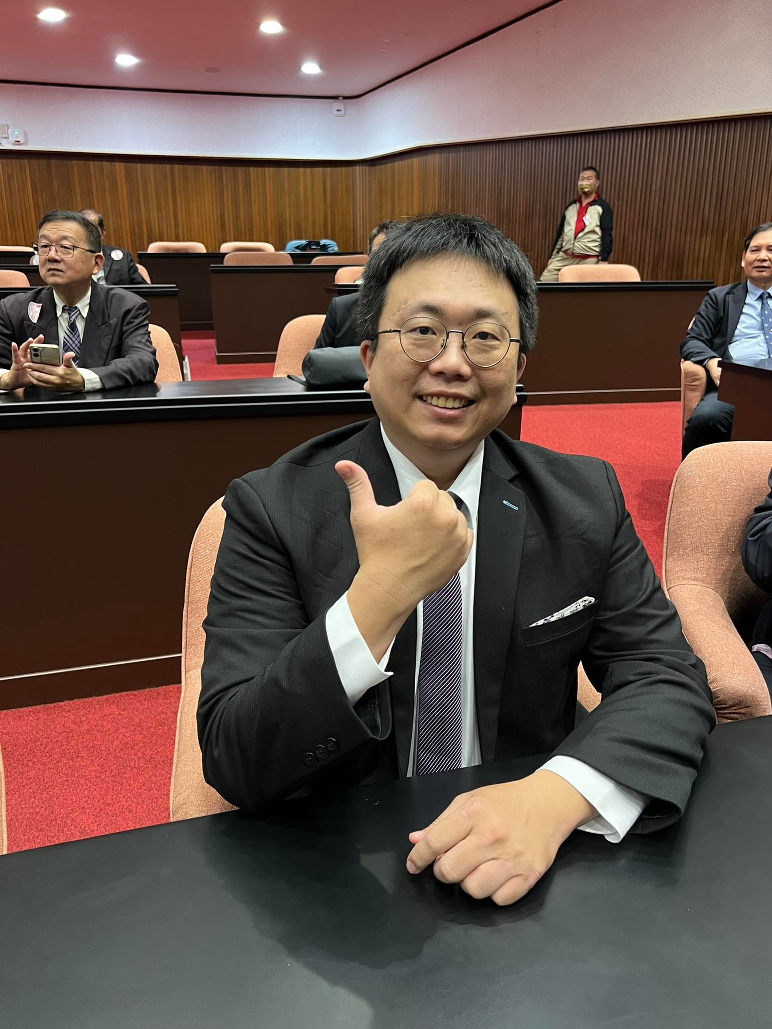 經他一介紹,我才知道,原來我坐的位置,是民眾黨立法委員所坐的位置呀!🤣(回家查才知道,我坐在陳昭姿委員的位置上,在黃國昌委員位置的旁邊,王義川委員就坐在正後面🤣🤣🤣)