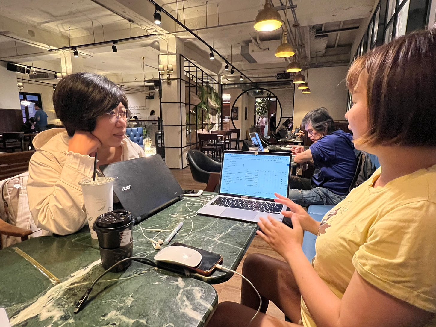 由於我們在問責/誇誇會議中分享完自己這週進度、問題、討論與下週進度後,會打開電腦做各自平常因忙碌沒時間做的「關鍵行動」。
