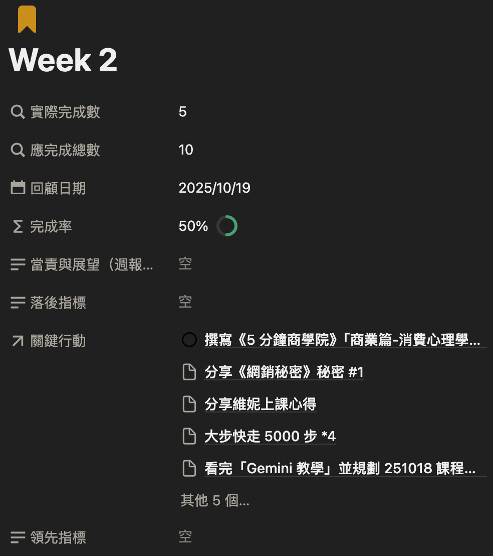 不管怎麼說,《12 週年計畫》的第二週總算順利完成了,下週就開始執行第三週的進度囉。😁